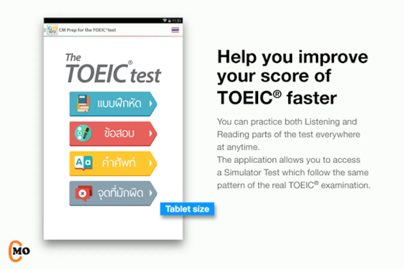 CM Prep for the TOEIC® Test (well-known as CM TOEIC® MASTER) is an application for TOEIC® testers who desire to prepare for taking
