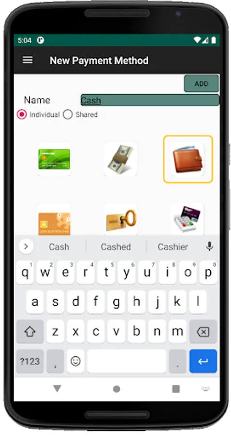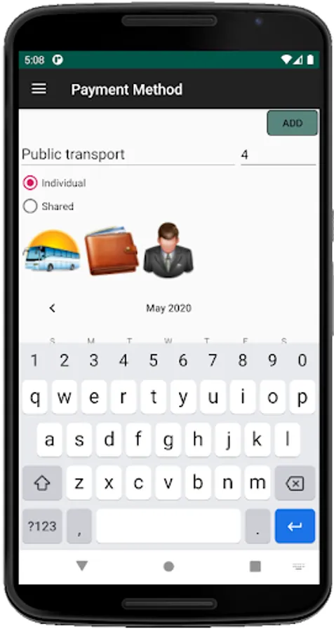 Creating a new item for above three departements is very similar because user has to add a name and an appropriate picture for the considering department. But when creating a payment method there is a bit different since the user has to select whether it's a shared payment method or not since there would be a shared bank account or a shared budget specially for married couple or a school/ university student gang.