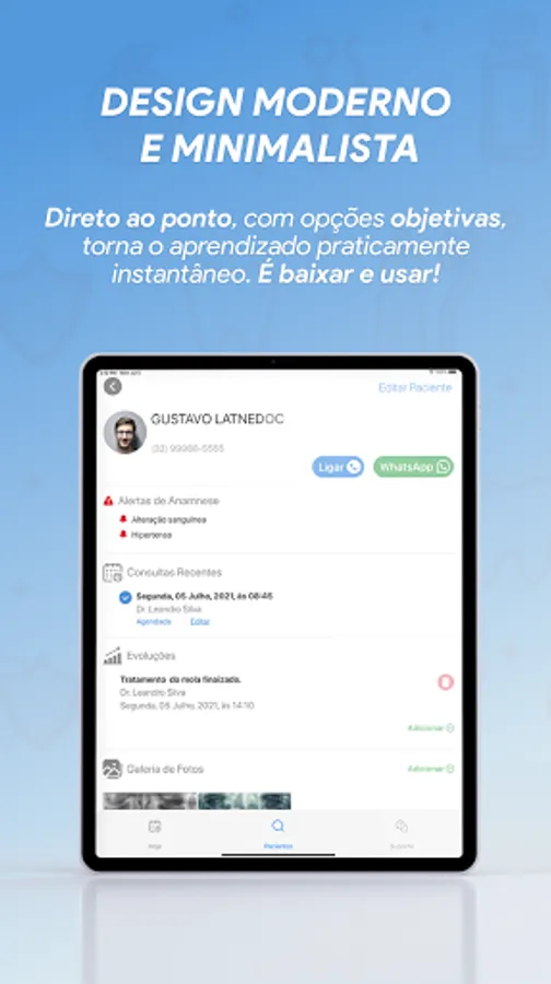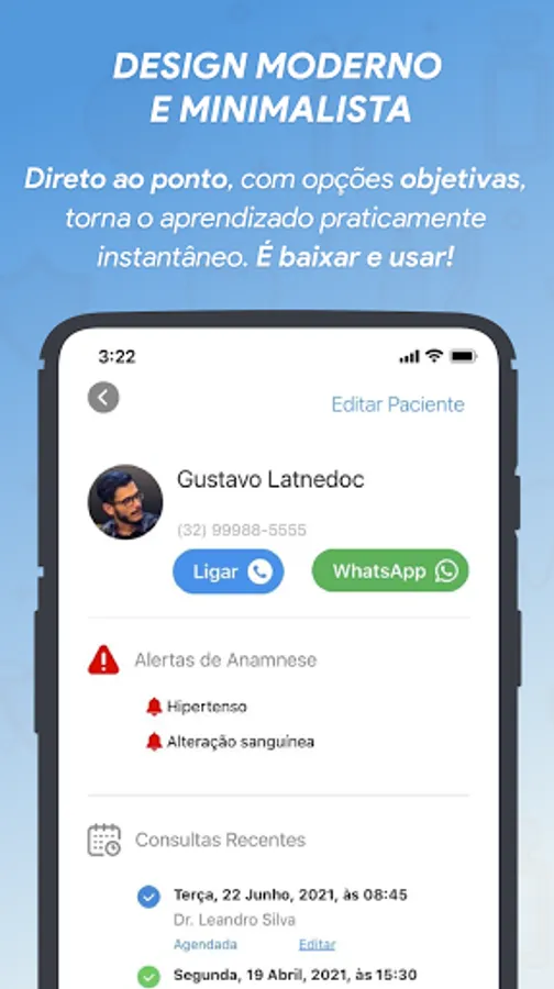 You need to contact with your patient? Use the "Connect" or "WhatsApp" button to contact you without having to add your phone's agenda.
