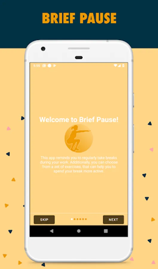 Brief Pause reminds you to take a quick brake and get the blood in your body going.