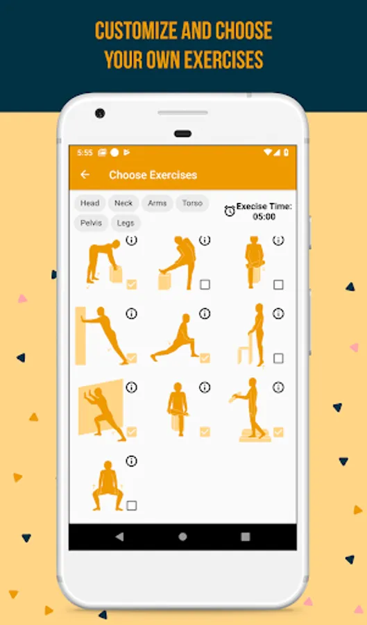 It has some default exercise sets, but you can also make your own, by choosing which exercises you want to do, and for how long you want to do them. We recommend this app for when you are stuck at a problem.