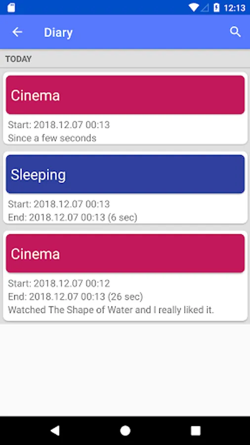 This mobile app creates a diary of your day to day activities. You can easily manage and add activities with just a few clicks. See all the things you have done and all the relevant information in one screen. You can also see reports of how you have spent your time for a longer period of time.