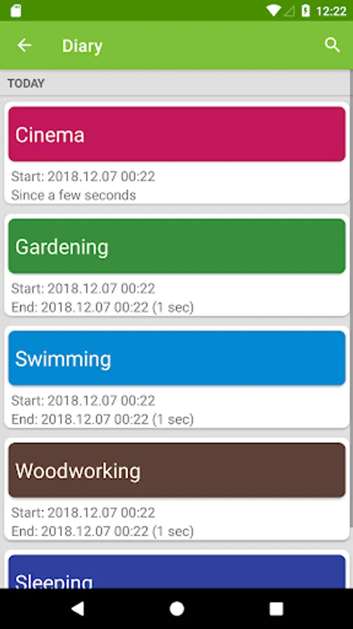 This mobile app creates a diary of your day to day activities. You can easily manage and add activities with just a few clicks. See all the things you have done and all the relevant information in one screen. You can also see reports of how you have spent your time for a longer period of time.