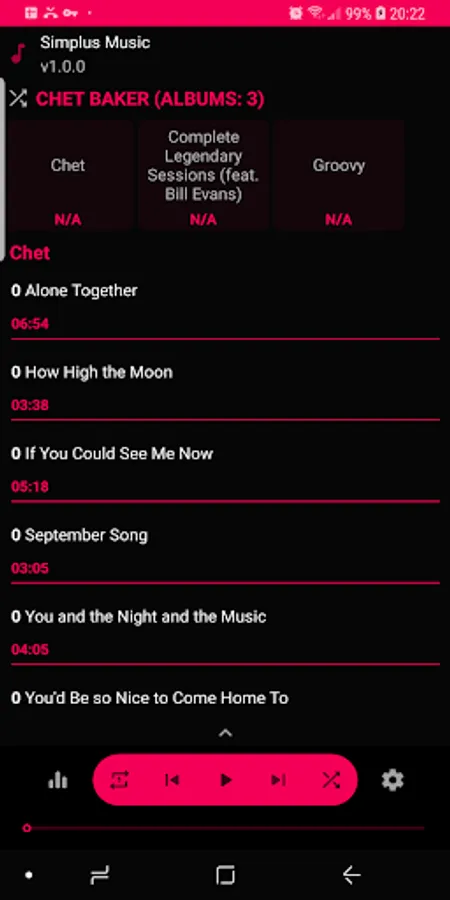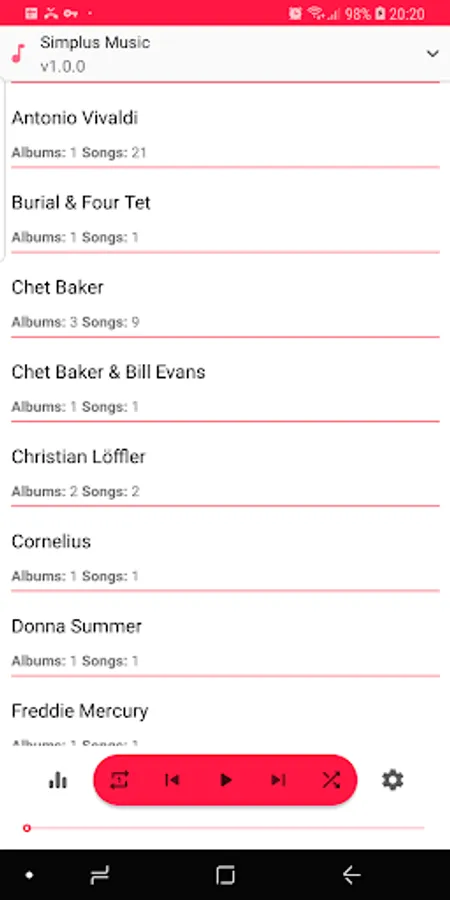 • Dynamic shuffle button: randomly plays the device/Artist songs;