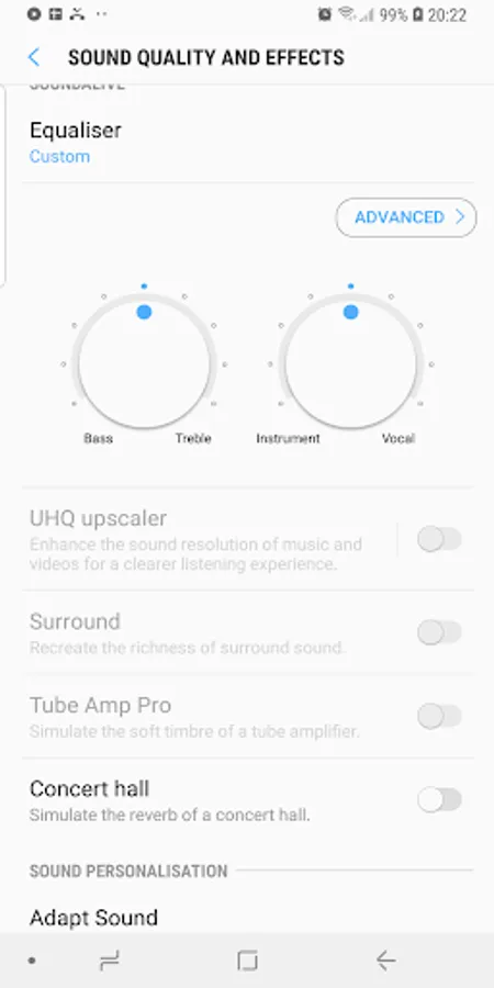 • System equalizer (if present on the device);