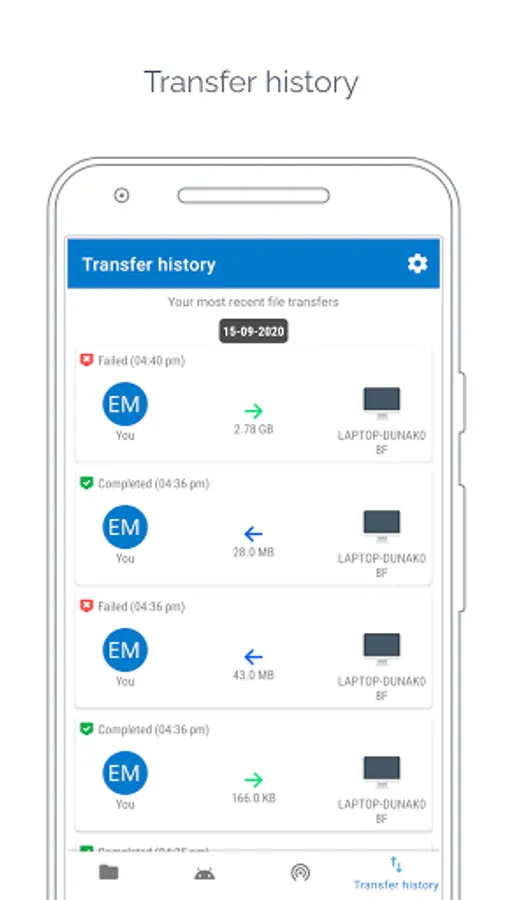 Send or receive files any time without any restrictions of acting only as a sender or a receiver.