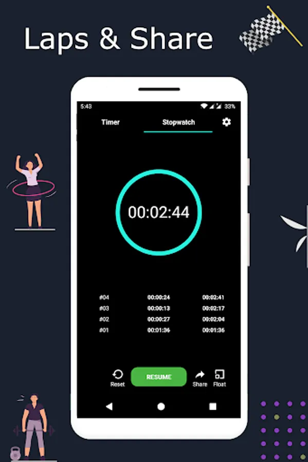 - Share your lap details in the Stopwatch.