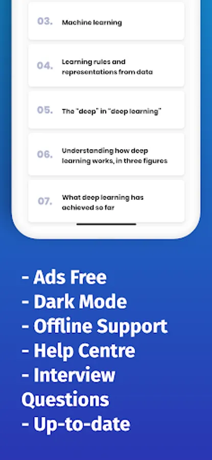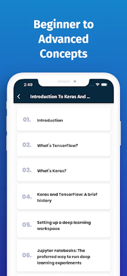 Learn Deep Learning with Python 3 app introduces the field of deep learning using Python and the powerful Keras library. As you move through this app, you’ll build your understanding through intuitive explanations, and clear examples. You’ll quickly pick up the skills you need to start developing deep-learning applications. Python is a general-purpose high level programming language that is widely used in data science and for producing deep learning algorithms. This app contains all the basic to advanced concepts of deep learning like neural networks, computer vision, how to work with tensorflow and keras library and it will turn you into a confident deep learning expert.