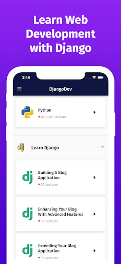 Learning Django can be a tricky and time-consuming activity. There are hundreds of tutorials, loads of documentation, and many explanations that are hard to digest. However, this app enables you to use and learn Django in just a couple of days. So you want to Learn Django Web Development to develop reliable and secure applications which stand out from the crowd, rather than spending hours on boilerplate code? Then the Django framework is where you should begin. Often referred to as a 'batteries included' web development framework, Django comes with all the core features needed to build a standalone application. If you want to learn the entire process of developing professional web applications with Python and Django, then this app is for you. In the process of building four professional Django projects, you will learn about Django 3 features, how to solve common web development problems, how to implement best practices, and how to successfully deploy your applications.