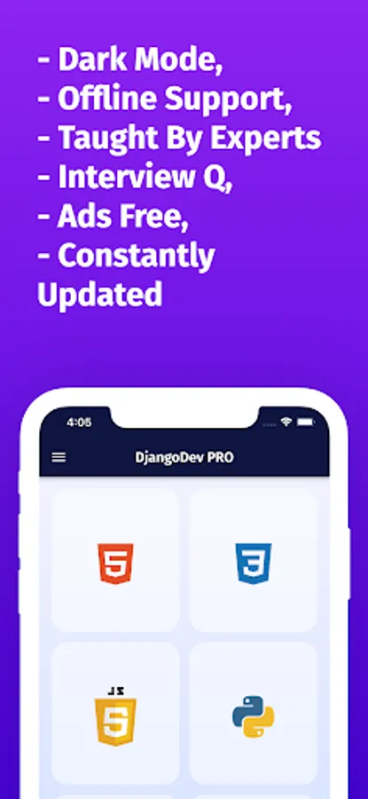 In this app, you will build a blog application, a social image bookmarking website, an online shop, and an e-learning platform. Step-by-step guidance will teach you how to integrate popular technologies, enhance your applications with AJAX, create RESTful APIs, and set up a production environment for your Django projects. You will also learn Python programming covering beginner to advanced concepts. You will also learn the basics of web development like HTML, CSS, JavaScript. As you progress, you'll learn various practical skills, including how to serve static files to add CSS, JavaScript, and images to your application, how to implement forms to accept user input, and how to manage sessions to ensure a reliable user experience.
