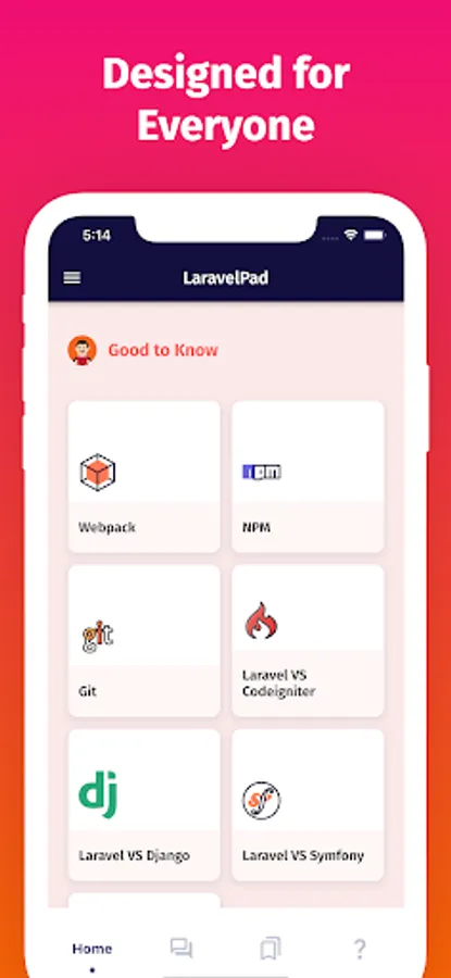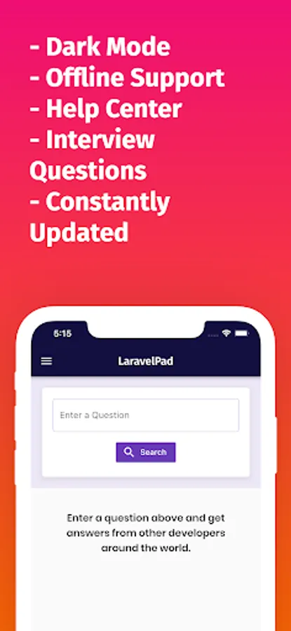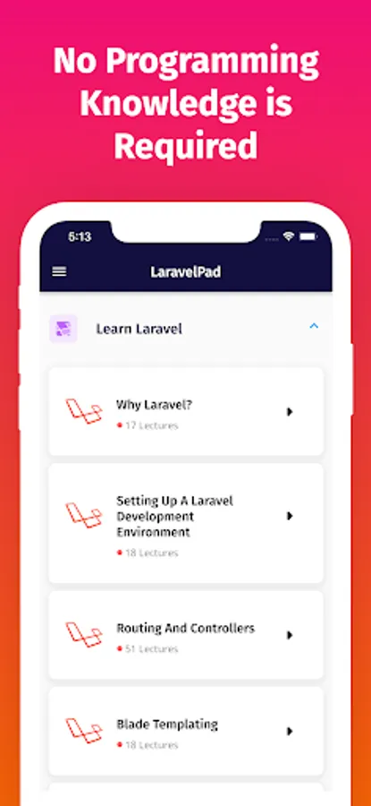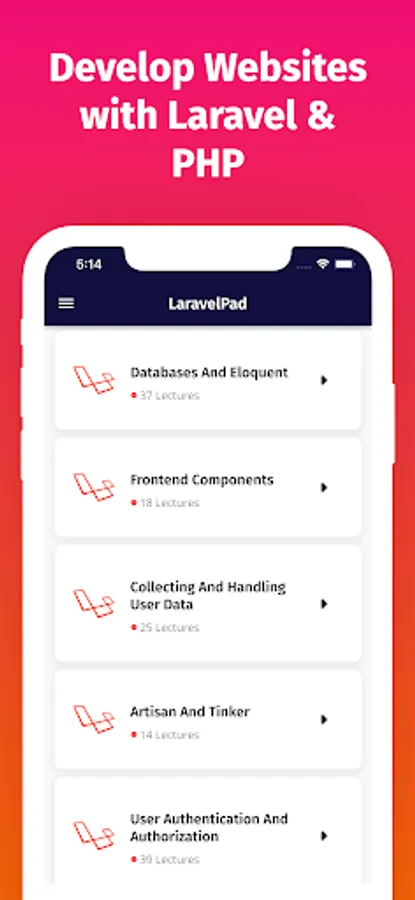 This app contains all the major topics of Laravel with Excellent Code Examples. With its beautiful UI and easy-to-learn guide you can learn Laravel within few Days, and this is what makes this app different from other apps. We are constantly updating this app with every new major Laravel release and adding more code snippets.