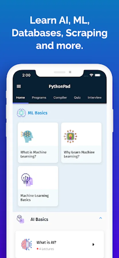 This app will teach you not just about Basic to Advanced Python Programming but you will also: