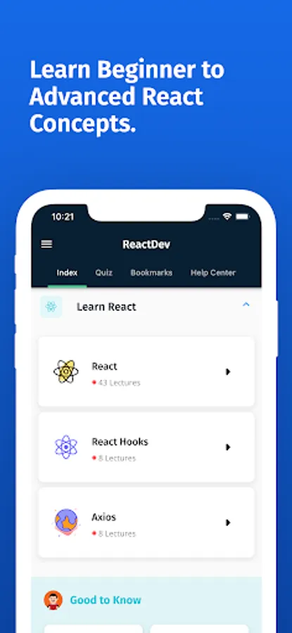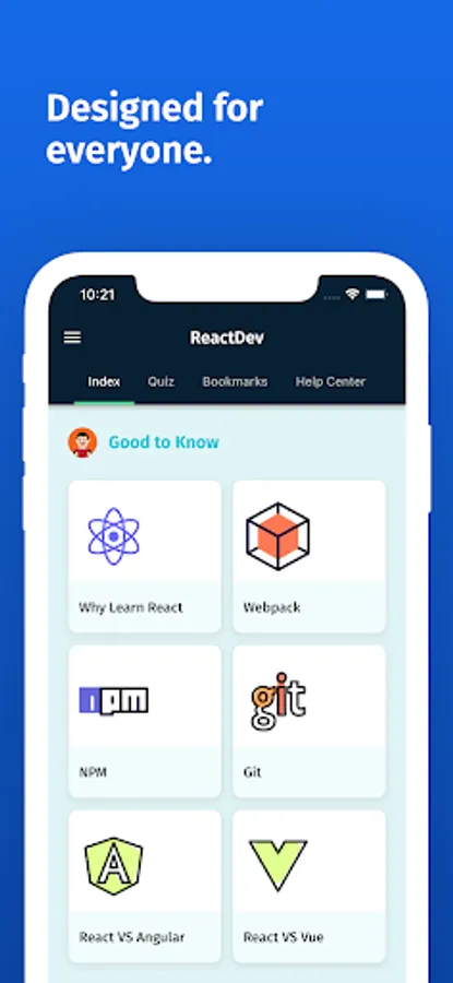 This app contains all the major topics of React js with Excellent Code Examples. All the topics contain code examples so you can get a better understanding of what's going on.