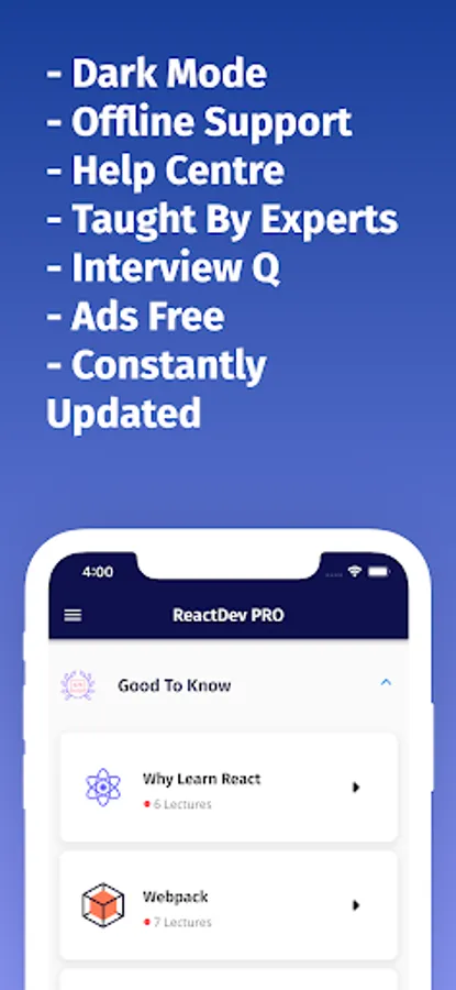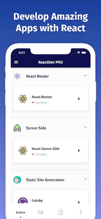 Learn React + JSX + Javascript + Typescript + ES6 + Redux + React Router + React Hooks +React Suspense + React Testing + GraphQL + Gatsby and more without Ads. This is a Complete React Development Tutorial and Guide. React is a JavaScript library for building user interfaces. So if you are a new react developer and thinking of learning React then this Learn React app is going to be your best friend.