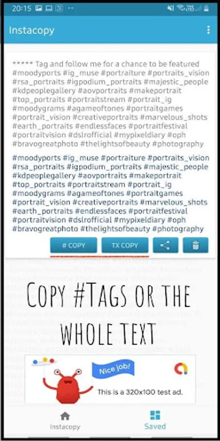 The hashtags or the text you have copied will be automatically saved in the app. You can always go back to the app to copy/share the saved text.