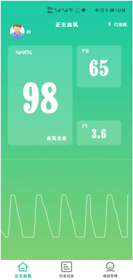 The Bluetooth oximeter APP is developed by Shenzhen Zhengsheng Technology Co., Ltd., which displays and manages the parameters passed by the device via Bluetooth BLE. Support Bluetooth BLE5.0 protocol. When the APP is running, search for the Bluetooth finger clip oximeter device with the Bluetooth broadcast name designated by Zhengsheng Technology Co., Ltd. and automatically connect it. When the connection is successful, the Bluetooth finger clip oximeter transmits the detected SPO2, PI, PR and other parameters to the APP via Bluetooth, and the APP displays the current measured data.