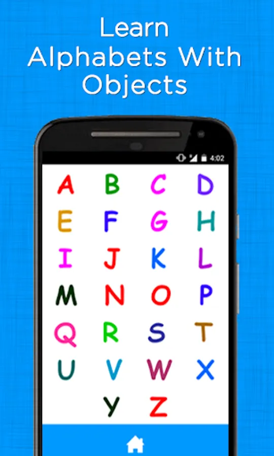 ABCD for Kids application which helps your kids to learn alphabets with around 10 different object representations for each letter and with human pronunciation. So the kids can learn 260 new objects as they learn ABCD.