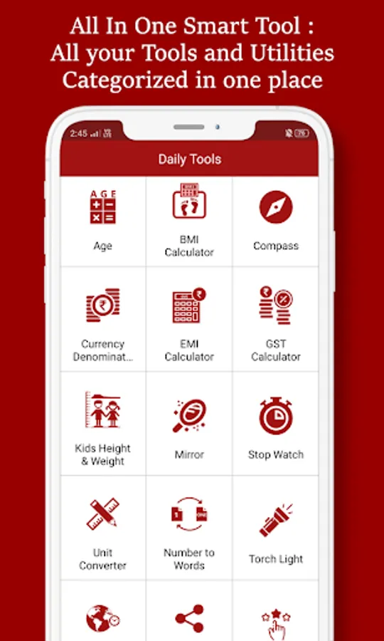 • Daily Smart Tools - Compass, Stop Watch, World Time, and much more.