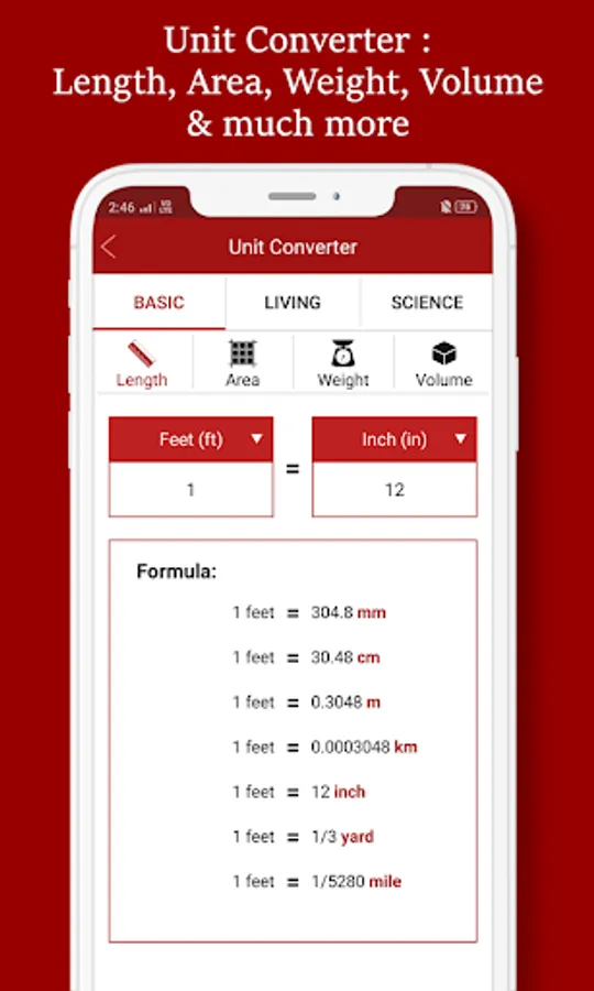• Built-In Calculator to perform basic Arithmetic operations on the fly while using the unit converter.