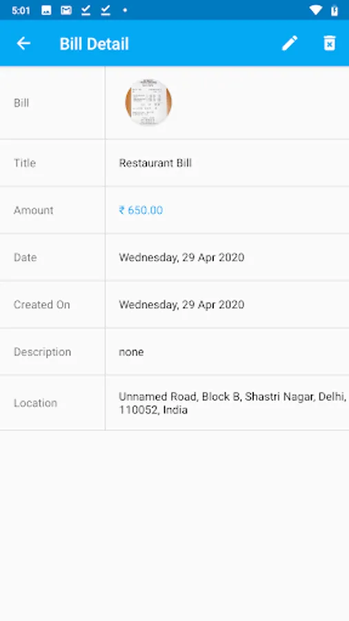 Note : Right now we are not saving bills online. They will be saved on your devices only. Once the app is uninstalled, bills will be deleted from your device permanently.