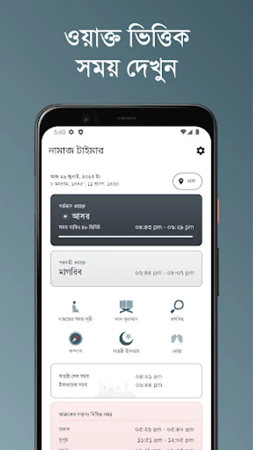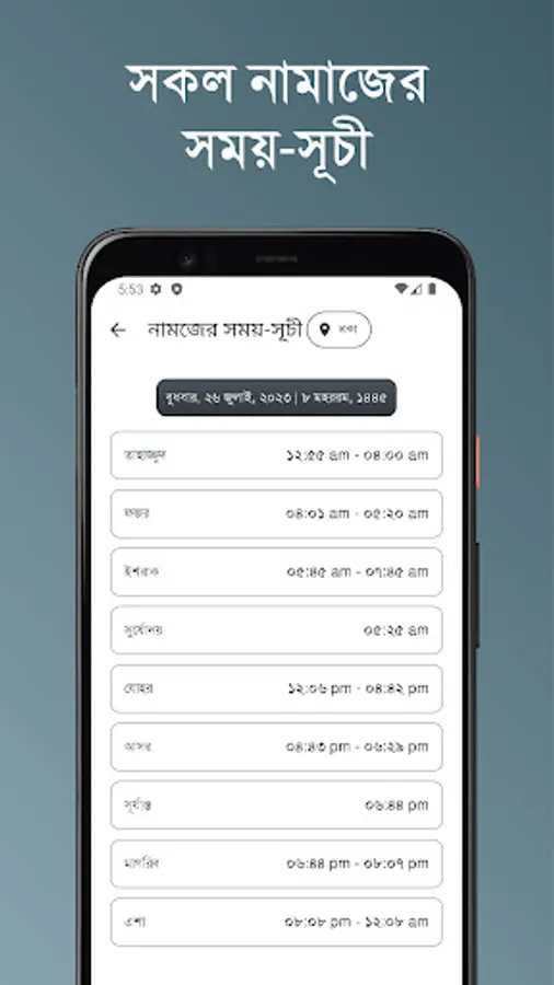 ✔ বাংলাদেশের যেকোনো এলাকার প্রতিদিনের ফরয নামাজের সময়।