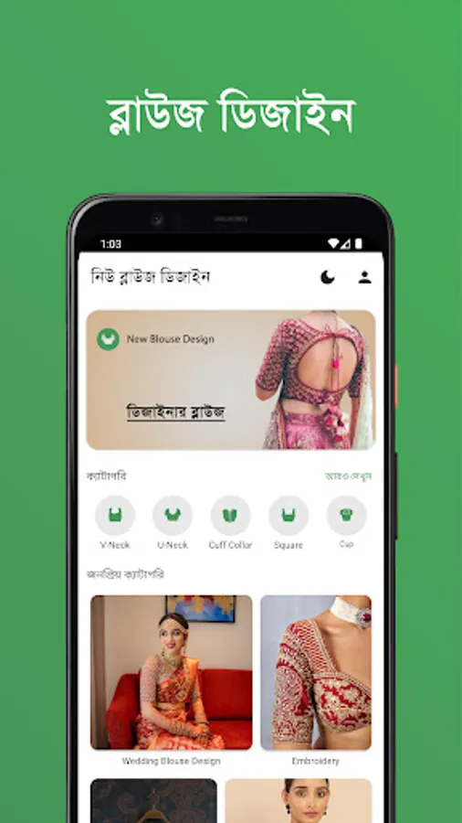 আপনি যদি নতুন ব্লাউজ নেক ডিজাইনের সাথে মানানসই ডিজাইনার ব্লাউজের সাথে শাড়ি পরতে পছন্দ করেন তবে আপনি আপনার অ্যান্ড্রয়েড ডিভাইসে ব্লাউজ নেক ডিজাইনের অ্যাপটি পাবেন।