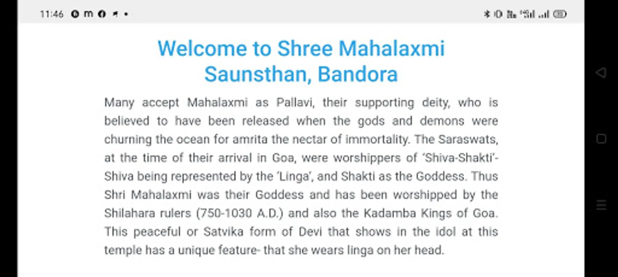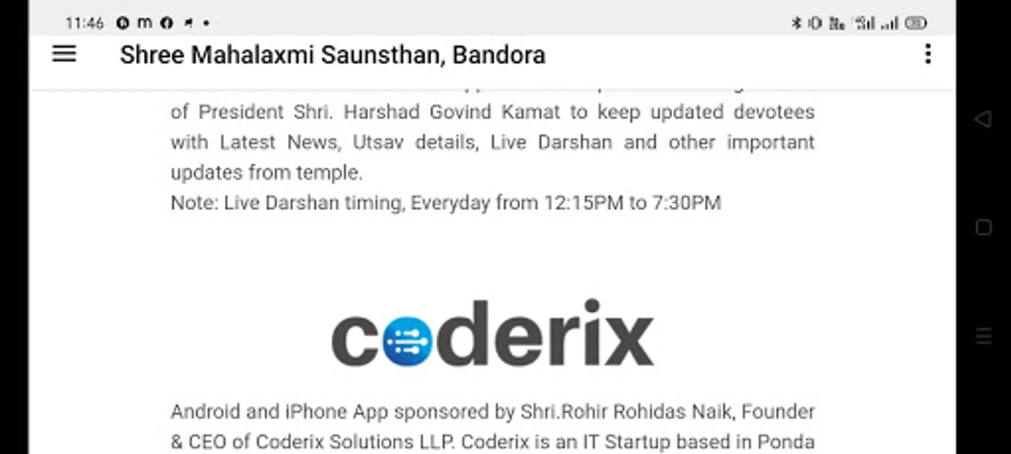 Shree Mahalaxmi Saunsthan's App was developed under the guidance of President Shri. Harshad Govind Kamat to keep updated devotees with Latest News, Utsav details, Live Darshan, and other important updates from the temple.