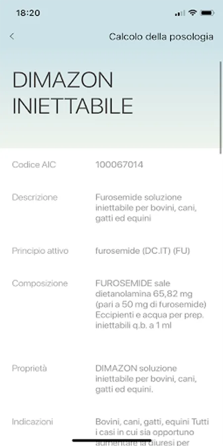 - Automatic calculation of the dosage based on the species and parameters of the animal