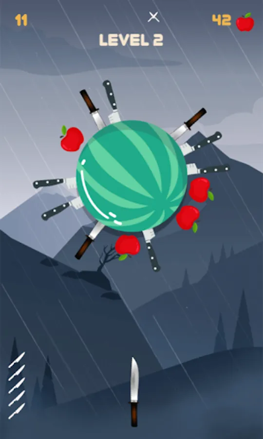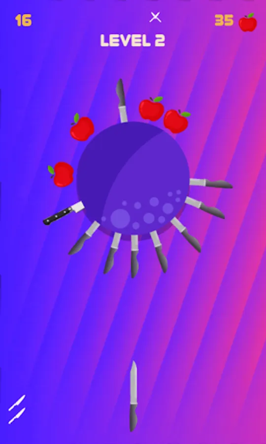 An addictive knife throwing game. Shoot the knifes into the apples to break them. Slice the apples and open new knifes. Each 5th stage is protected by a chief master - beat them to get select knifes!