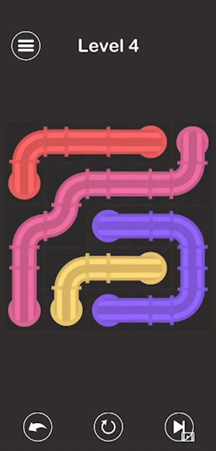 - Fifth screen you can start connecting. Link dots of the same colour with a single pipe line, but make sure you create the pipe connection in a way that will not prevent connecting other dots with pipe lines as well. So don't let any connection cross another. The puzzle is solved when you complete connecting all matching colour pairs. Well Done!