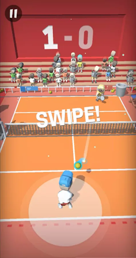 Tennis 3D Mobile is a complete mobile tennis game. The game consists of tournaments with a cup at the end of each tournament. Each tournament consists of 3 games, and in case the players loses, the tournament starts over. The match ends when either the player or the opponent scores 3 points.