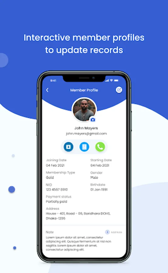 GymCity has various types of theme settings to carry your gym color. You can also create different membership types based on your business process. All the invoices are created automatically according to your membership types and billing cycles. You can update all the invoices' status and keep track of your member payments.