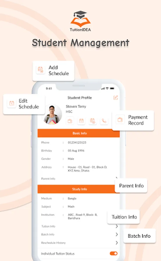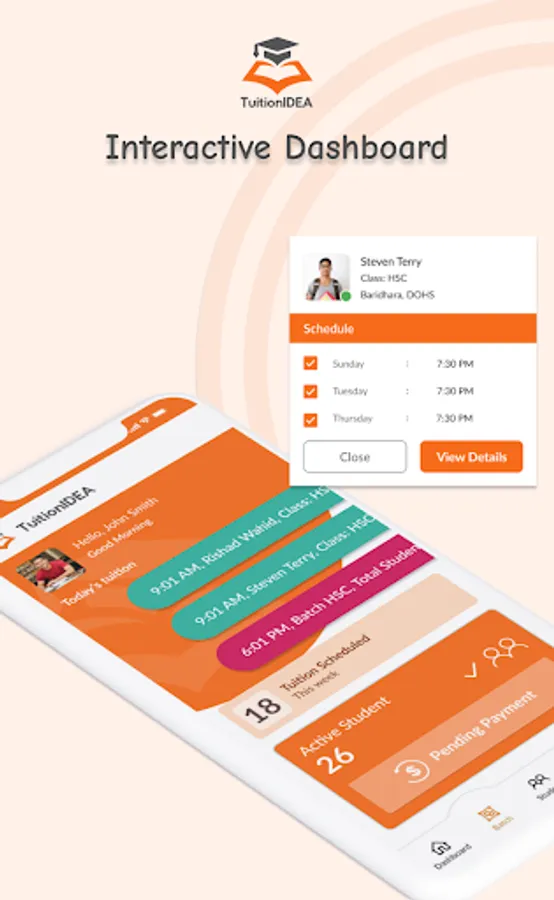 The app helps all tutors/teachers who want to manage their students online and offline and can see details. Tutors are also able to manage their tuition date/time with students. A calendar and list view of this app makes life easier for the tutors to manage their schedules. When a tutor starts a new tuition with a student he can check the calendar or dashboard and make a date. Tutors can track their payment details.