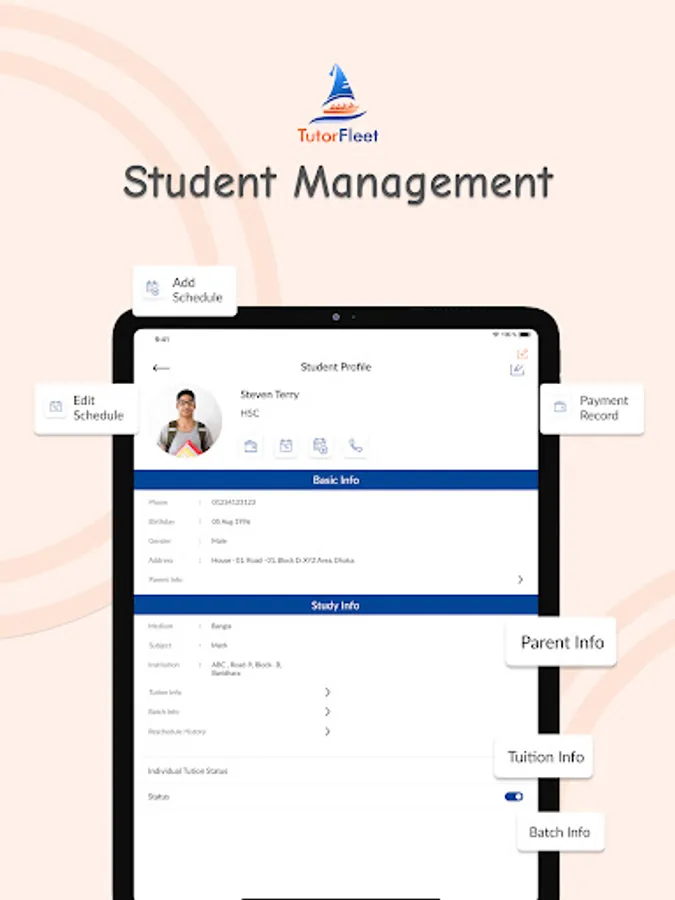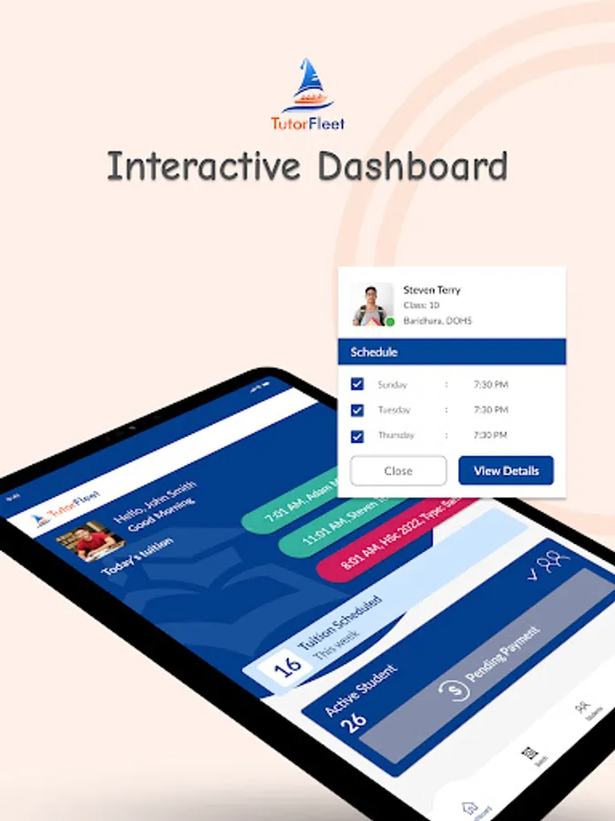 Mission of TutorFleet is to provide, high-quality mobile application services that will make life easy for Tutor. In Tuition Profession, Keep track of all student's schedule and their information is not easy specially when Tutor has multiple students, And we believe TutorFleet will satisfy all the demands of a Tutor. We combine managerial experts with a large pool of extremely qualified and experienced web and mobile app developers in order to provide world class service.