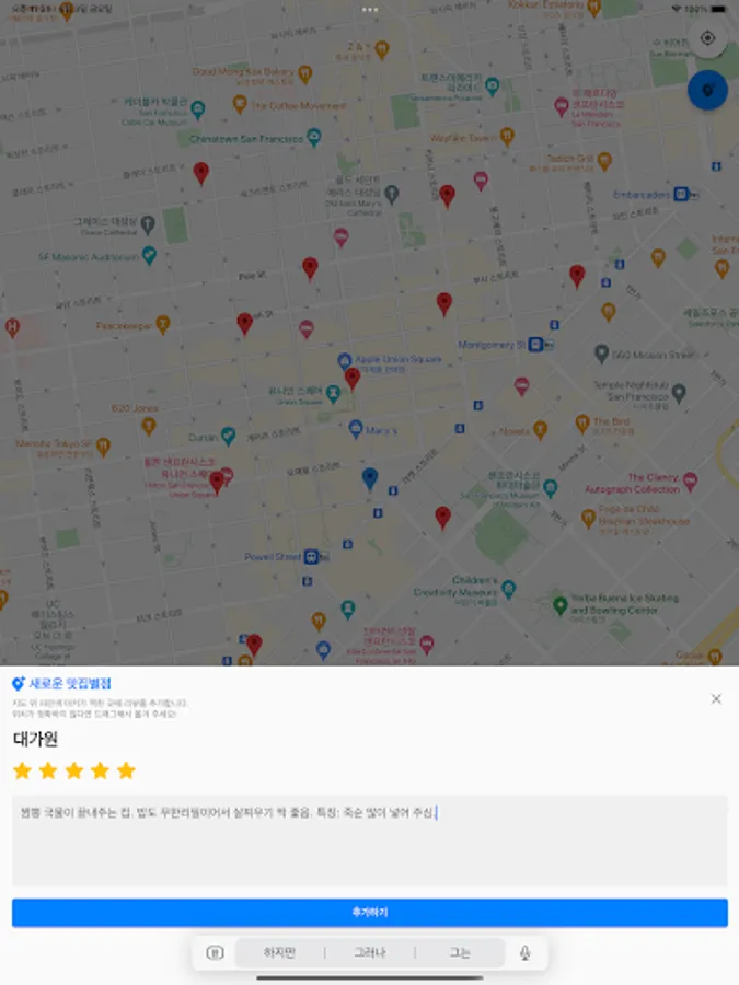 The restaurant star rating is a very light restaurant note. Don't you remember the last restaurant you visited? Please use the restaurant star rating. You can record a star rating every time you visit a restaurant, and simply leave a note if you find something that impresses you. Don't worry about what to eat next time you stop by. If you are with friends, why not take them to a restaurant that has given you high ratings in the past?