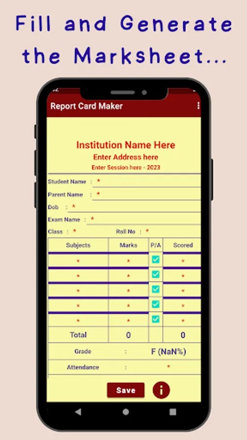 Exam Report Card / Mark Sheet creator app is very much useful for teachers, not for students, and is one of the fastest app designed with the ease of simplicity and creates Exam Report Card / Marksheet instantly.