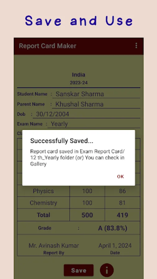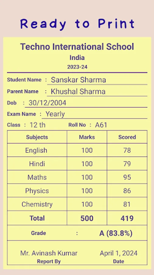 So Design Exam Report Card / Mark Sheet Now with one of the coolest App!