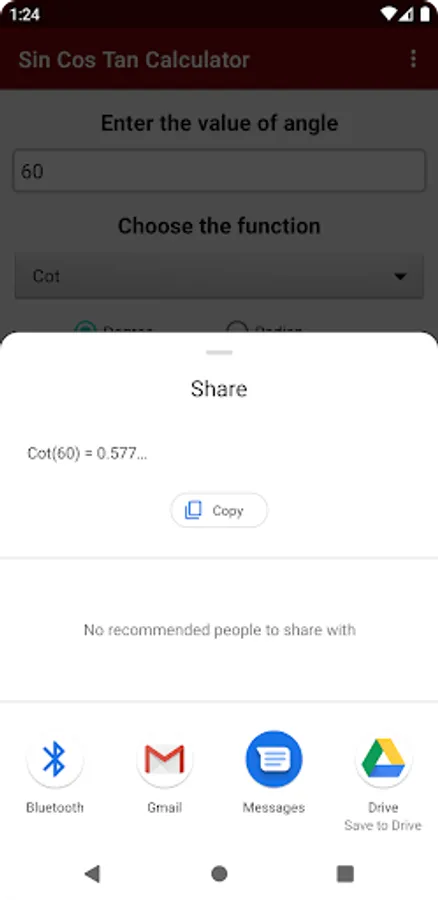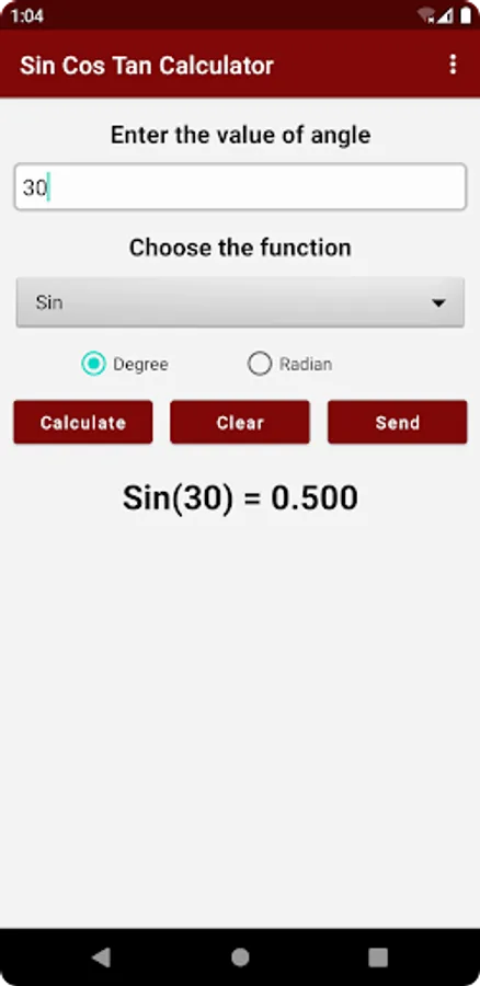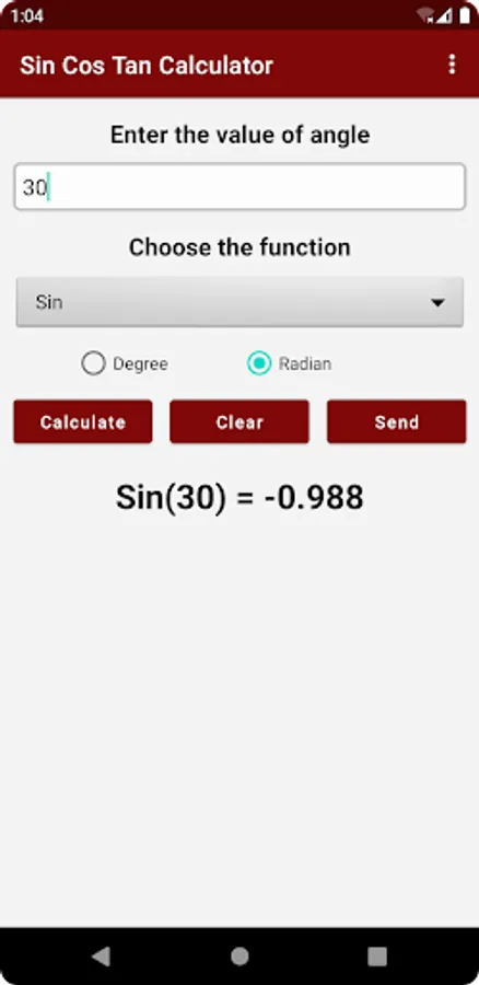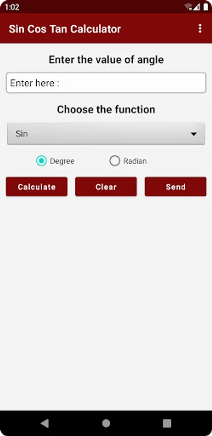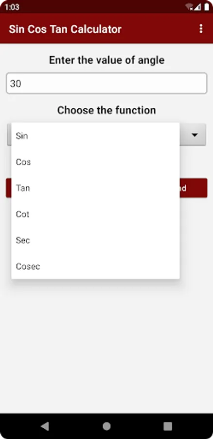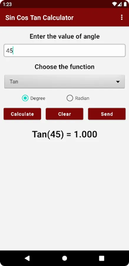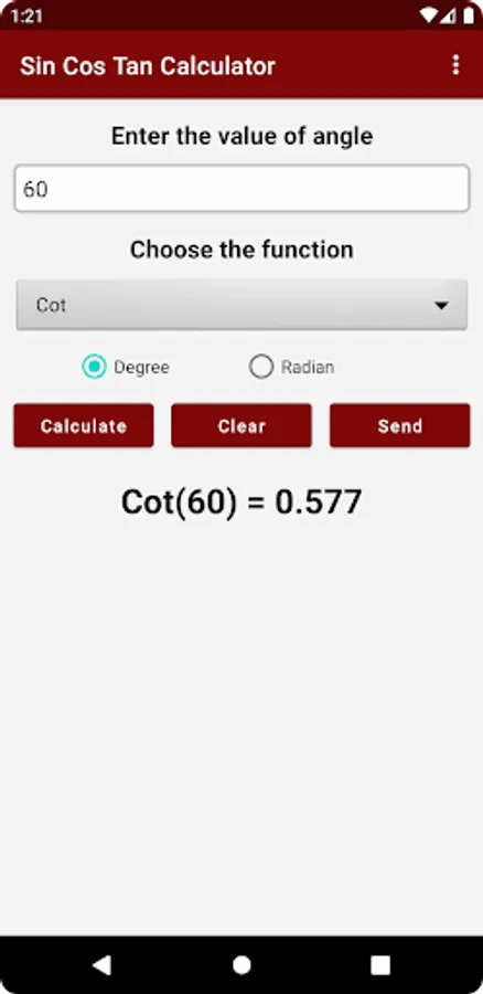 You just have to enter the value in degrees or radians and select the function. The result will be displayed instantly.
