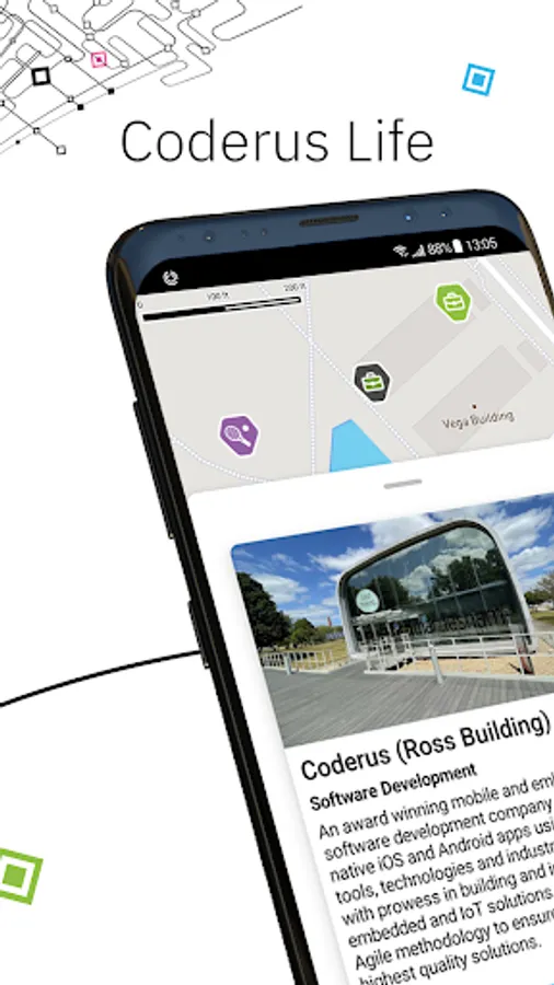 The Coderus Life app is for anybody who will be spending some time with us at Adastral Park. Whether you’re a visitor, one of our permanent members or just interested in learning more about what is at our location and the tech cluster.