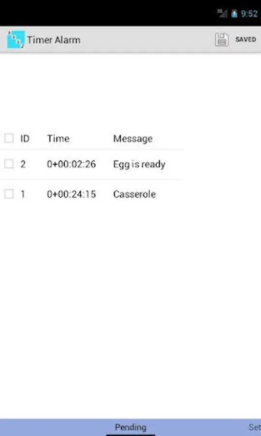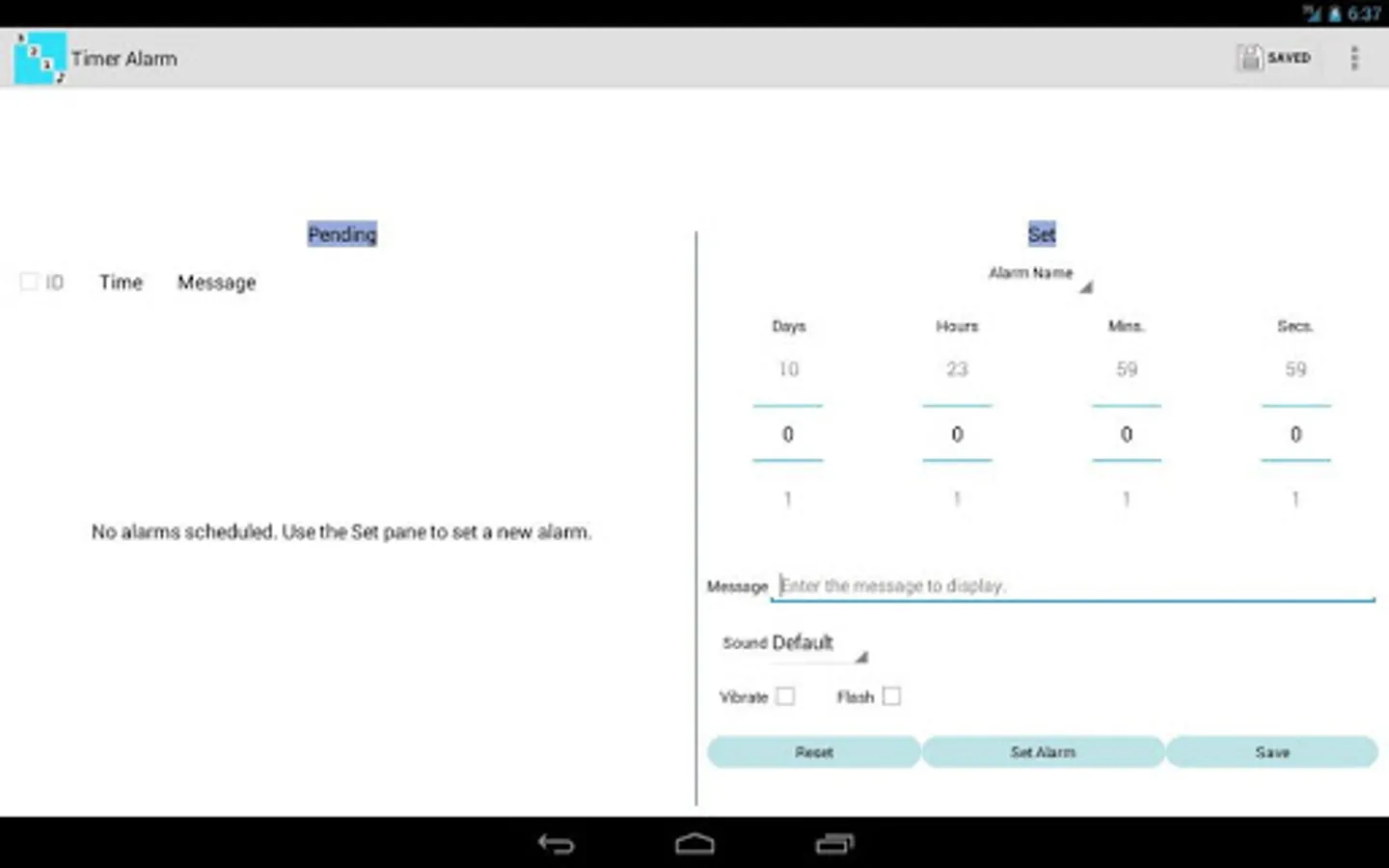 Timer Alarm is a countdown timer app. You can have multiple timers going concurrently. You can save and recall frequently used timers. You can be notified by a chime, or use any alarm sound on your device, or have the device vibrate or flash the screen.
