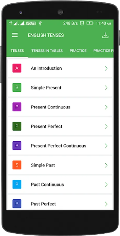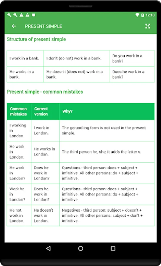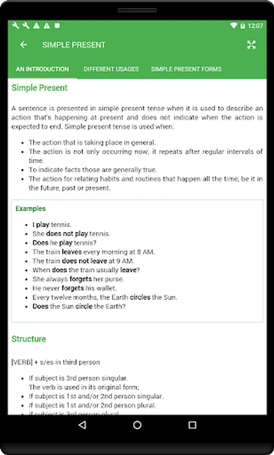 This app helps you to learn the Tenses of English languages in a very easy and effective way. All the topics in this app are covered in depth and in a most simple way.
