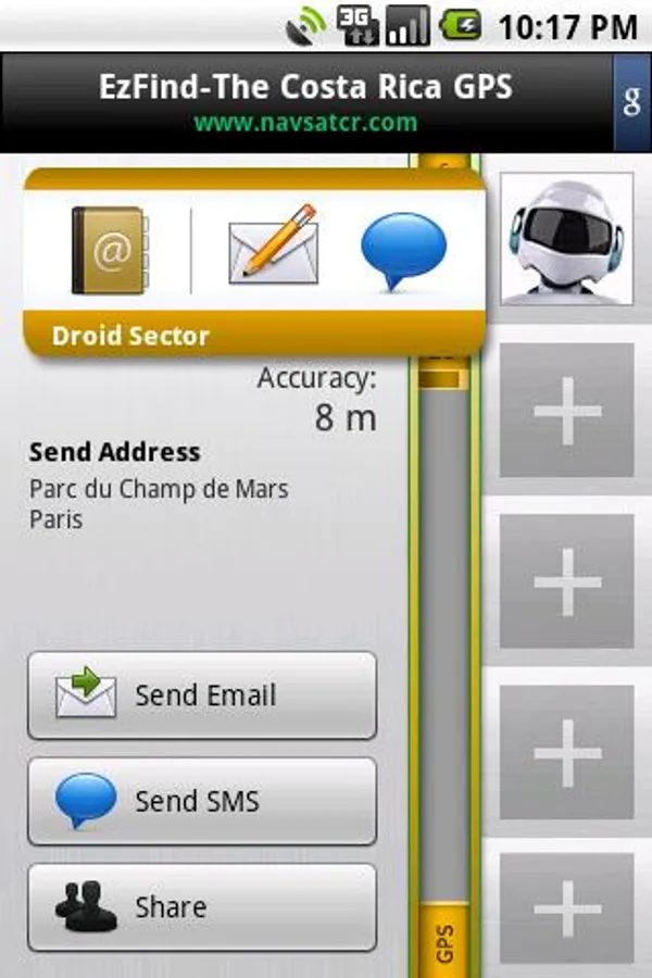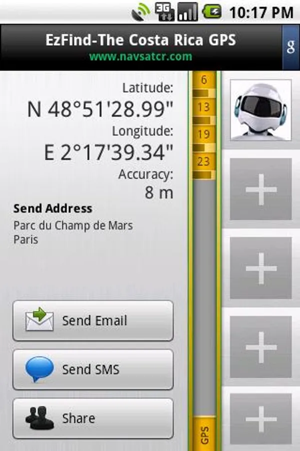 Let people know where you are! This application can send SMS or email with your coordinates and link to Google Maps. This link also opens in Maps application on Android and iPhone and can be used as an endpoint for driving directions.