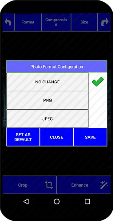 - Format Selection: Photo format include: PNG and JPEG. Default value uses original image extension.