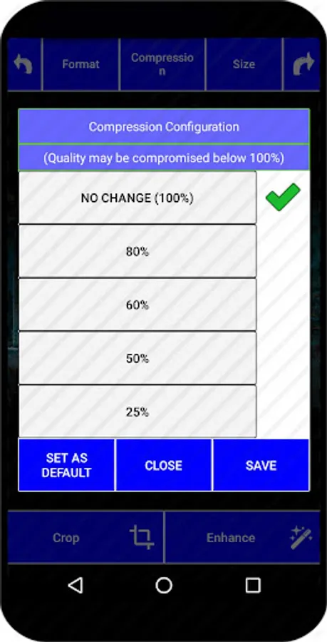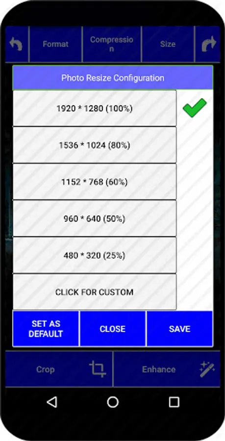 Photo Resizer Pro for Android features an all in one free app that lets you save tons of space by resizing, compressing, cropping and even changing the image format. Start by selecting the image you would like to resize or you can pick a batch of images at the same time and apply the resizer to all of them at once.