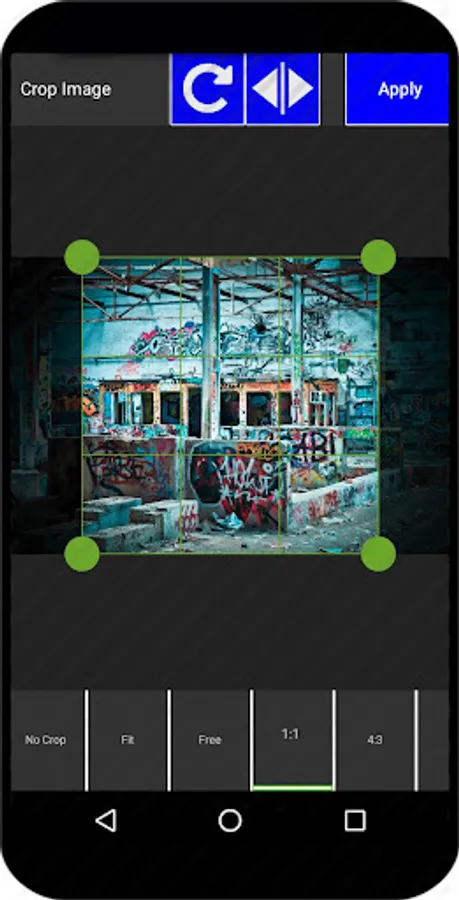 - Crop and rotate your images: You have the possibility to crop the image to any height and width. Choose from the predefined aspect ratios or use the free one to move the handles to any position.