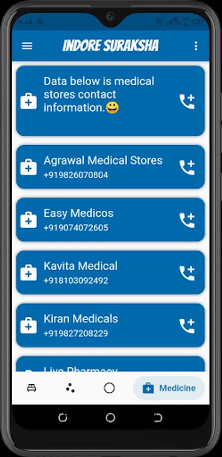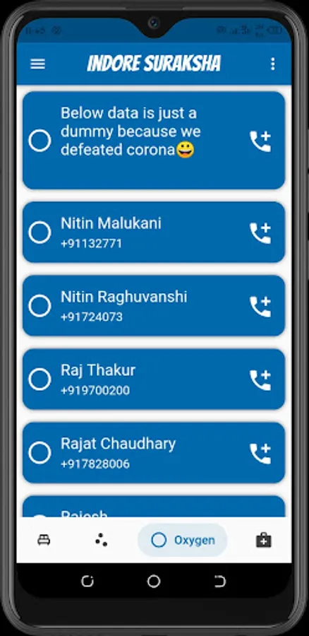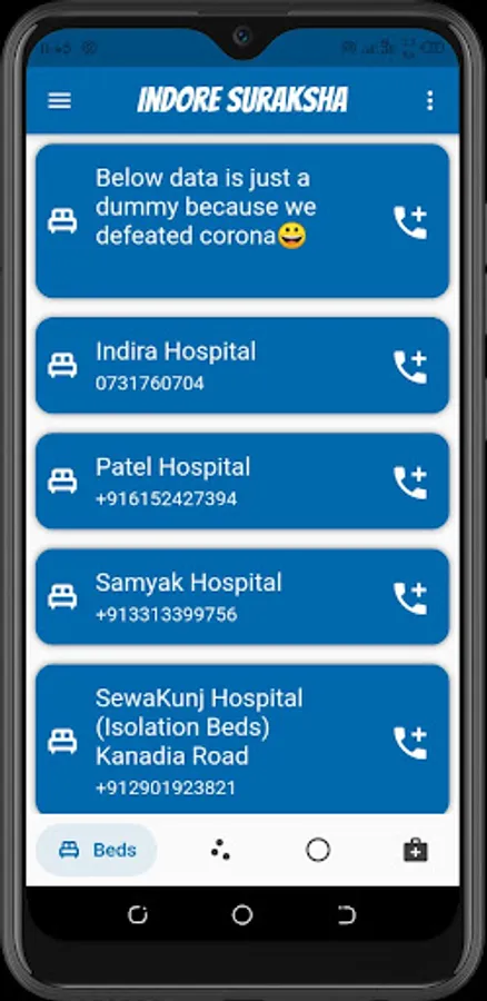 Indore Suraksha provides you the verfied contact numbers of bed, plasma, oxygen, and remdesivir providers. This app can help you to find the required things rapidly. Data will be update daily.
