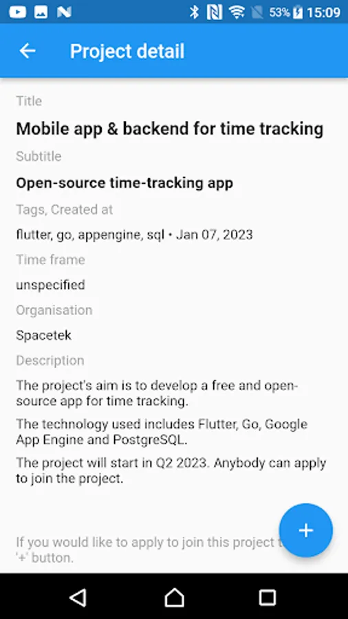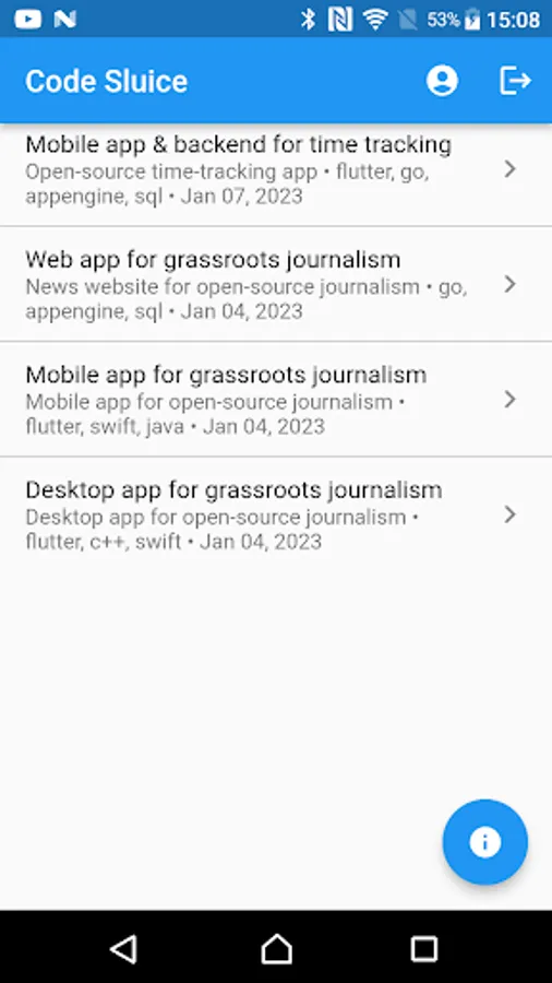 This application provides a list of open-source projects and allows you to express interest in joining them. It is targeted at students and independent developers.