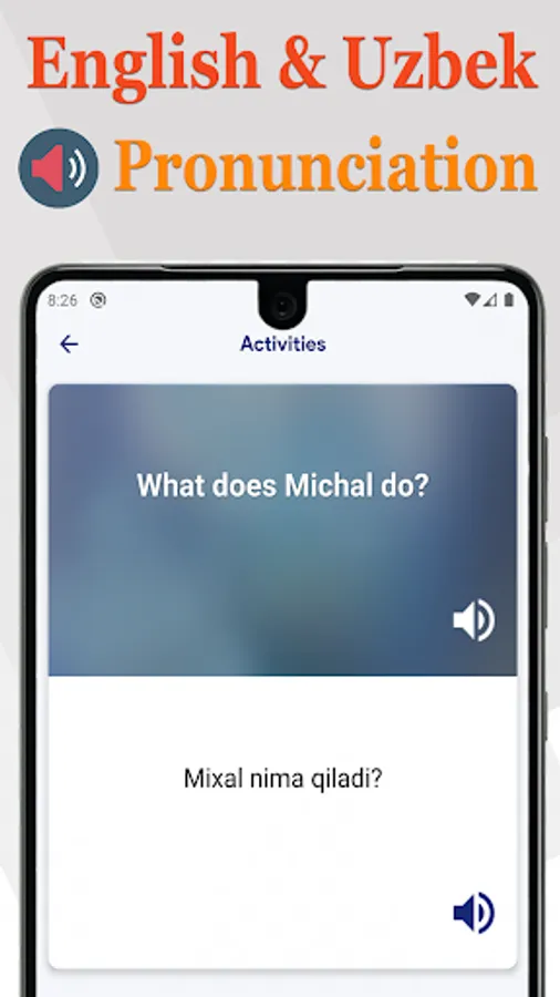 * O'zbek tilini ingliz tilida o'rganishni boshlash va o'zbek tilida gapirish maqsadiga erishish uchun bugun "O'zbek ingliz tilini o'rgan" ilovasini yuklab oling. Ingliz tilidagi ta'sirlar o'zbek tilidagi har bir so'z va jumlaga to'g'ri keladi.