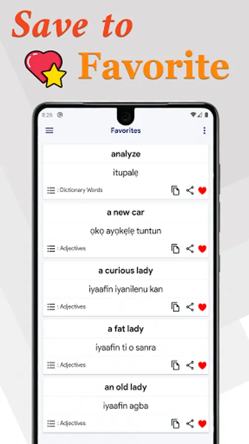 There are many categories in which you can find phrases such as if you want to Know that where is the doctor sitting today than you will find a category (At the Doctor) and in this category, you will find phrases about the doctor. You can easily learn Yoruba if you give 15 Minute a day to this application.