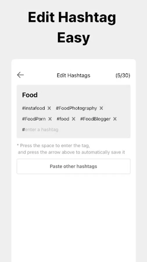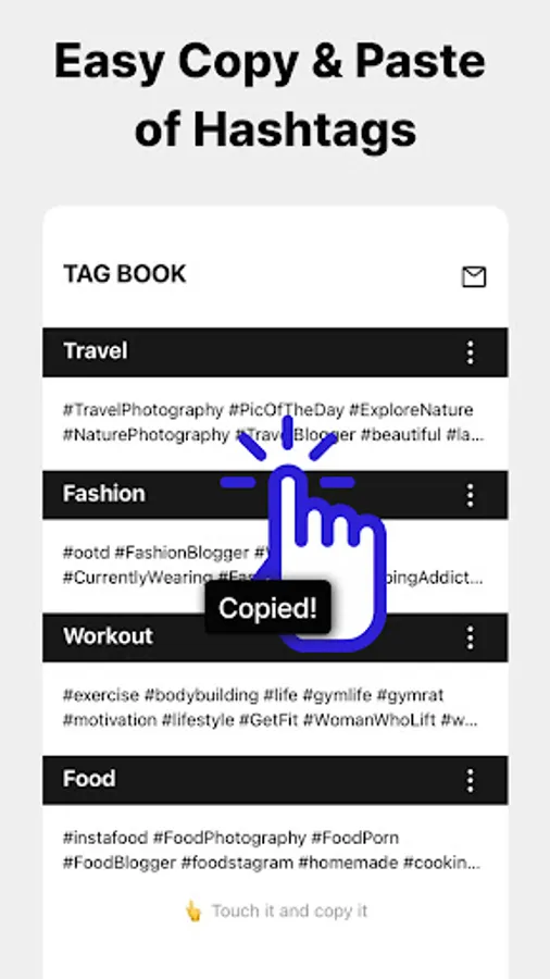 - You can easily copy the hashtag collection with one click.